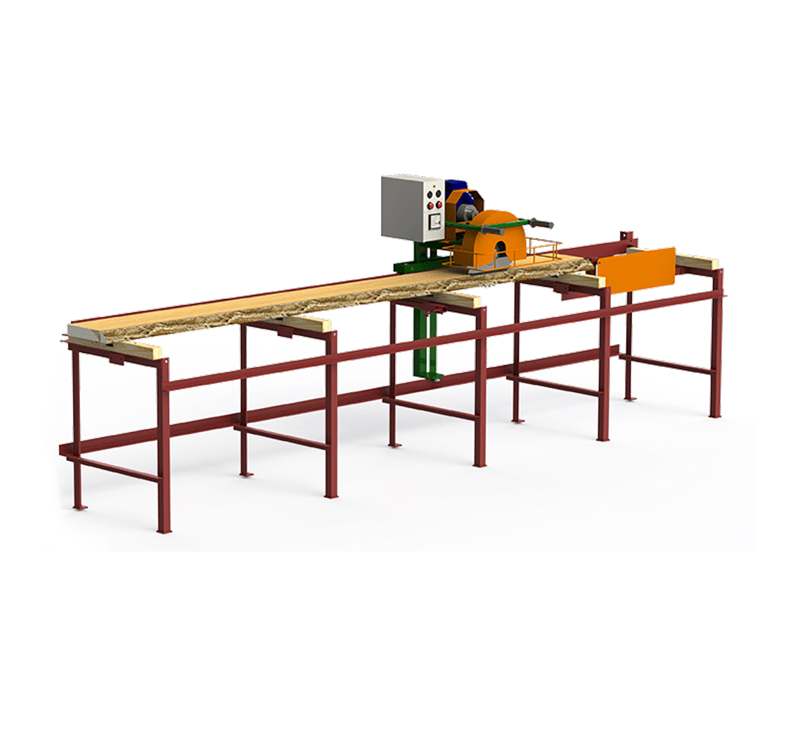 Исключительно жесткая и безопасная конструкция. В конструкции станков применены беззазорные направляющие, что обеспечивает идеальную точность пиломатериала. Первоначально обрезается обзол, далее заготовка базируется гранью по упорам, имеющим диапазон регулировки 5...250мм. Станок оптимален для производства бруска, заготовки под погонаж, индивидуального безотходного раскроя доски. Перемещение пильного блока осуществляется вручную оператором станка за поручни. Для удобства транспортировки рама станка разбирается на несколько составляющих.