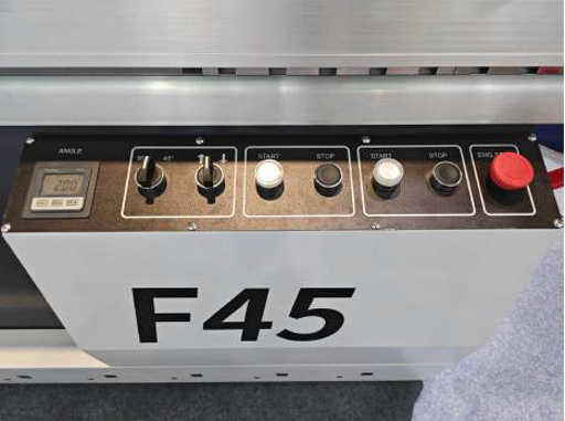 Удобная панель управления на которой располагаются кнопки включения –выключения пил, кнопка управления подъемом основной пилы и наклона пильного узла. Угол наклона легко читается на электронном табло. |