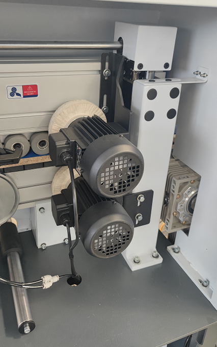 Предназначен для удаления микроволны на обработанной радиусной поверхности кромки после фрезерного узла. С помощью вертикальных и горизонтальных круглых копиров обеспечивается точное отслеживание профиля детали.
