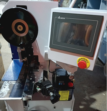 · Прижимные ролики позволяют прижать любую рулонную кромку и полосовой материал-рейку. Усилие пресс группы задается пневматически, что позволяет качественно приклеить кромочный материал к детали.