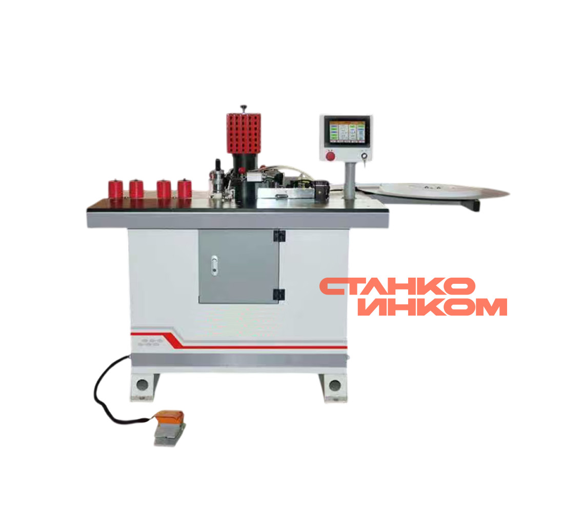 Предназначен для облицовывания прямолинейных и криволинейных кромок мебельных щитов и заготовок натуральным полосовым и синтетическим рулонным материалом. Приклеивание ведется при ручной подаче заготовки. Подача кромочного материала в зону приклеивания осуществляется автоматически из магазина.