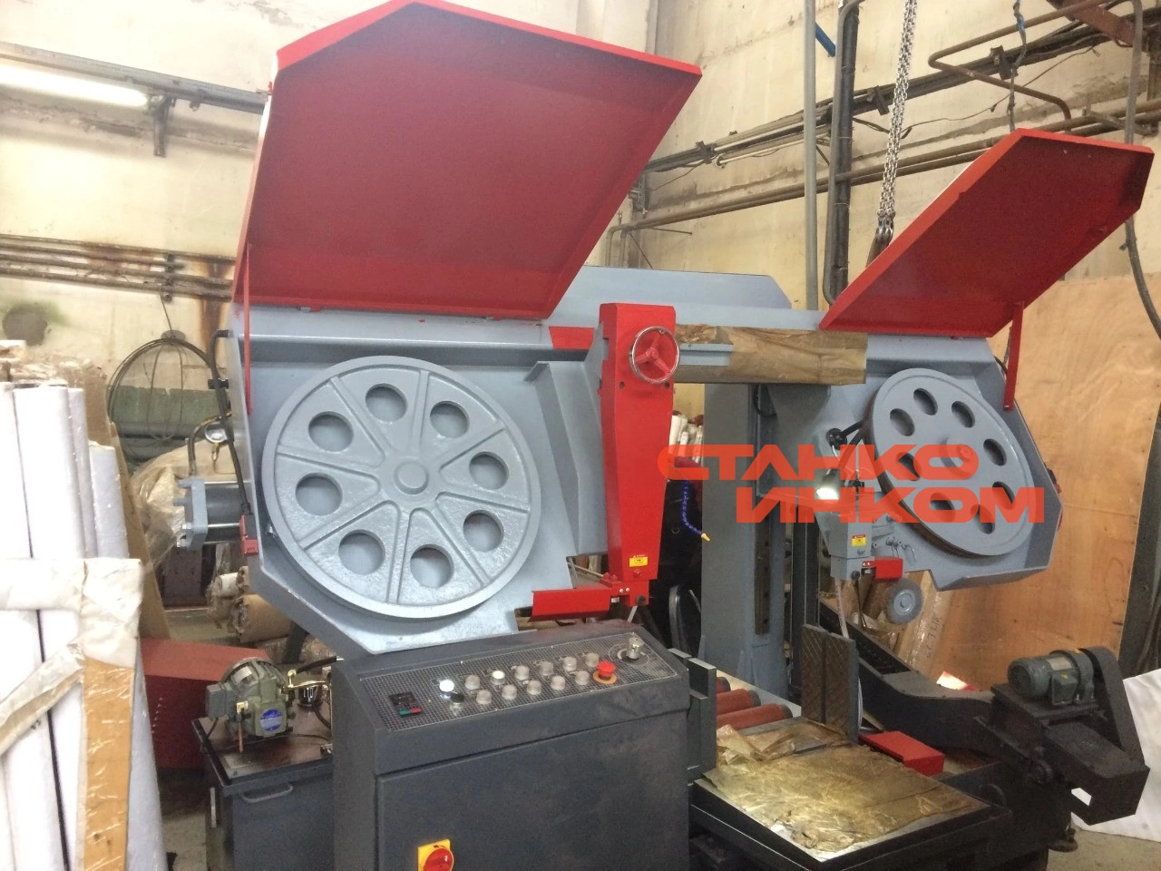Зажим заготовки осуществляется гидравликой, что обеспечивает быструю и надежную фиксацию заготовки. Натяжение полотна осуществляется механически и обеспечивает оптимальную натяжку по параметрам, рекомендованных мировыми производителями ленточных полотен (300 Н/мм2).