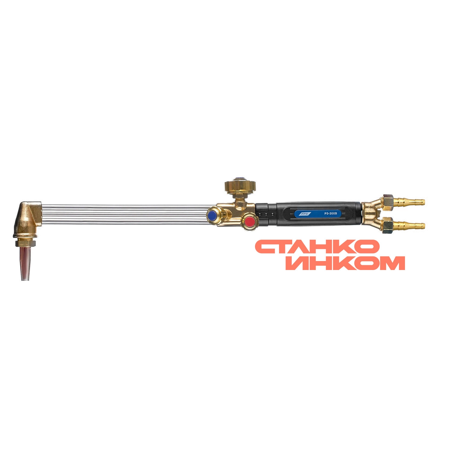 Универсальный резак внутрисоплового смешения газов для резки металла толщиной до 300 мм. Вентиль кислорода режущего. Укомплектован разборным пропановым мундштуком, ниппелями и накидными гайками. Не требует установки огнепреградительных клапанов.