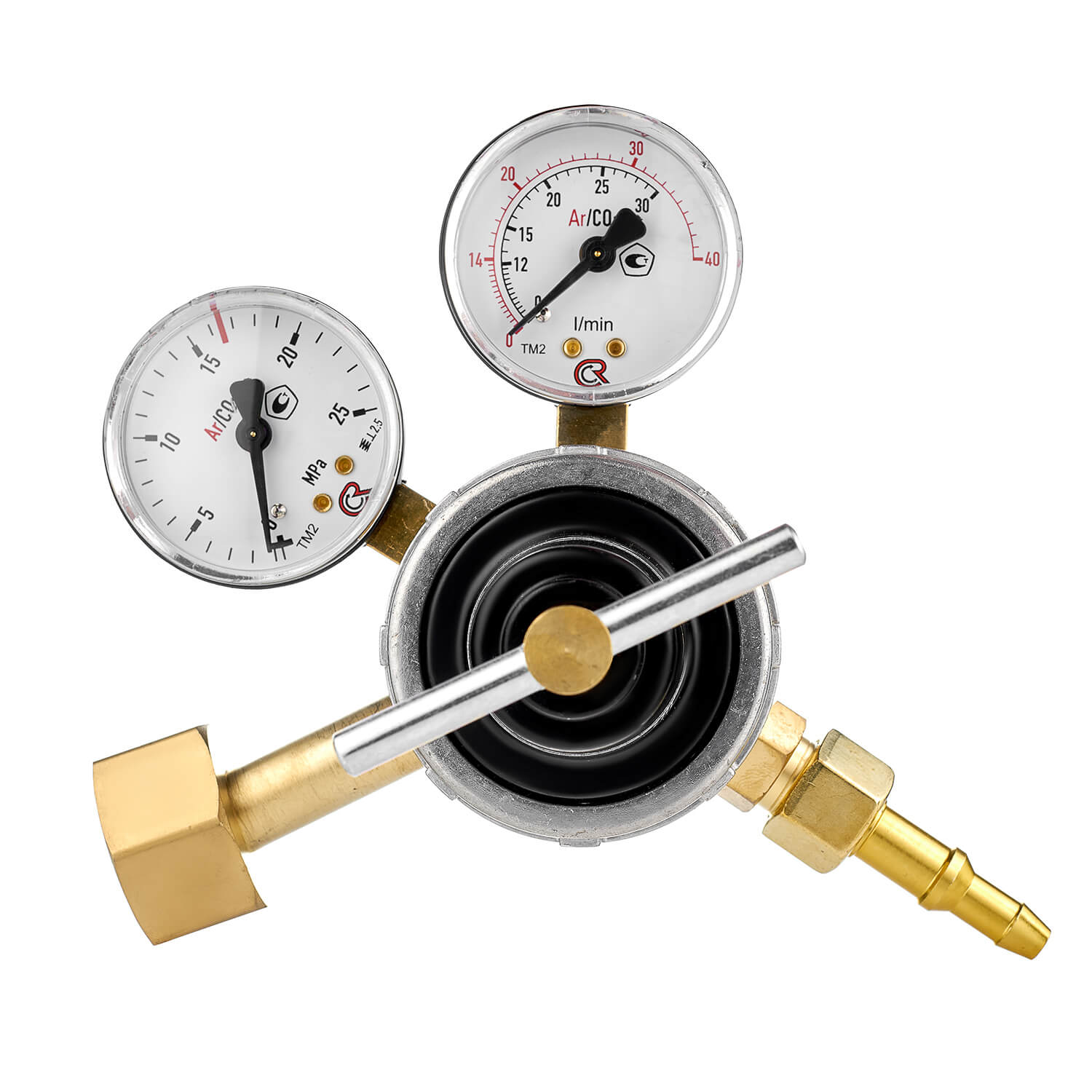 Регулятор расхода газа ПТК У-30/АР-40-4 (001.010.618) с манометром давления, который отображает показания давления в баллоне, и манометром-расходомером для настройки расхода углекислого газа или аргона предназначен для понижения давления газа и автоматического поддержания постоянным заданного расхода при питании постов и установок в среде защитных газов.