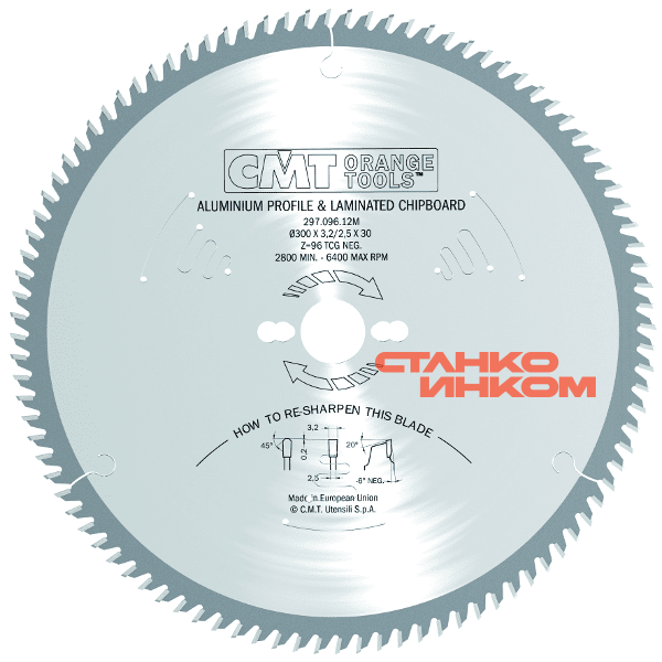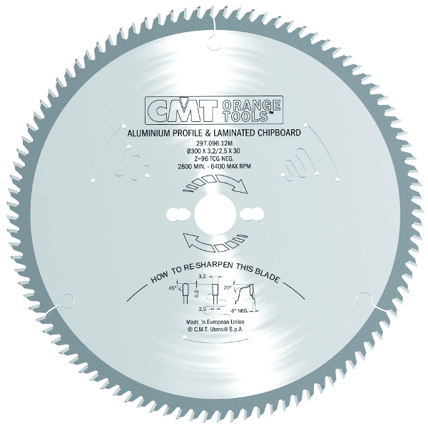 Дизайнеры и технологи компании CMT представляют пилу по цветным металлам. Основными особенностями являются высокая ударная вязкость зубьев из специального сплава, трапецеидальная заточка для долговечности и малая высота зубьев для более надежного крепления. Отрицательный угол врезания 6° позволяет контролировать процесс пиления и оставлять гладкие аккуратные края заготовки без замятия тонких деталей. Специальная конструкция пазух для эффективного удаления стружки.