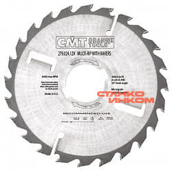 Пильный диск с переменно-скошенными зубьями и специальными подрезными ножами для распиловки сухой или влажной твёрдой древесины. Твердосплавные подрезные ножи из карбида вольфрама предотвращают контакт обрабатываемой заготовки с полотном пилы и его зажим. Идеально подходит для многопильных станков с одним или двумя шпинделями на валу.