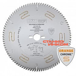 Новые пильные диски с зубьями переменно прямой/трапеция, специальным покрытием ХРОМ (хромирование) и прорезями в корпусе, заполненными специальным материалом, для снижения вибрации и шума при работе для форматного раскроя плитных материалов таких, как ЛДСП и фанера, без сколов и отщеплений.