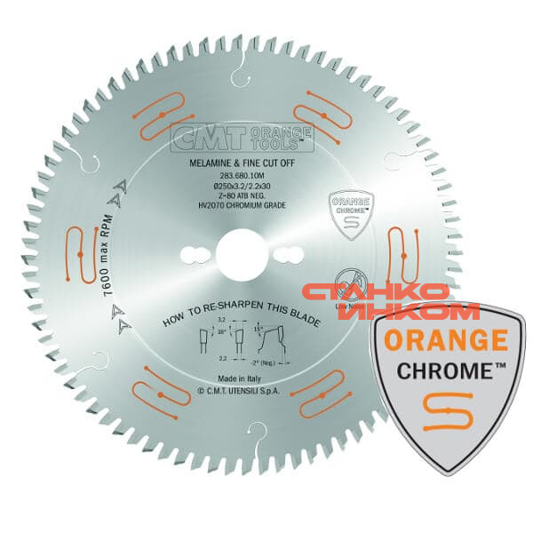 Малошумные дисковые пилы CMT индустриальной серии 283 CHROME с хромированным корпусом для реза панелей и деталей с двухсторонним покрытием или ламинированием (либо шпонированием).