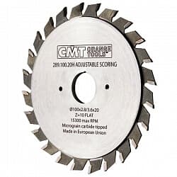 Применение: регулируемые пилы CMT работают в паре с основным пильным диском и предназначены для выборки небольшого паза с обратной стороны ламинированной панели для предотвращения сколов. Подрезная пила должна выбирать паз на 0,1-0,2 мм шире, чем пропил основной пилы.