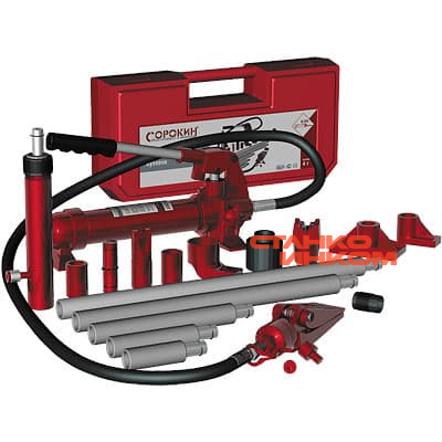 Основными рабочими механизмами данного набора являются гидроцилиндр и гидронасос. Для увеличения функционала выполняемых работ набор можно дополнить гидроцилиндром обратного действия усилием 2 т и усилием 5 т.