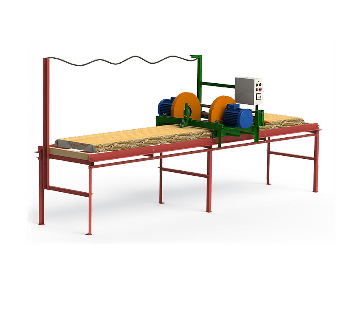 Доска укладывается по центру стола и обрезается сразу с двух сторон при движении пильной каретки как в прямом, так и в обратном направлении. Прижим доски обеспечивается прижимными роликами по центру доски. Дисковые пилы вращаются друг против друга, всегда в одном направлении, вт.ч. при смене направления пильного блока. Перемещение пильного блока осуществляется оператором станка вручную за поручни.