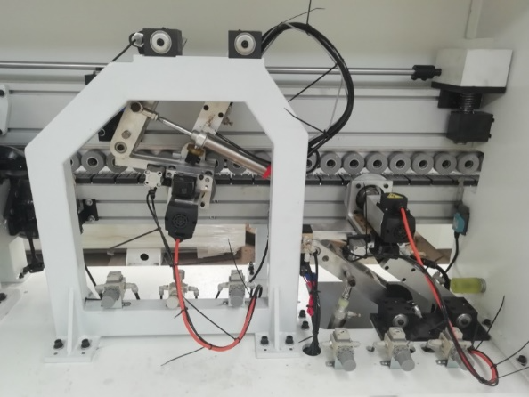 Перенастройка на 2 вида кромки одним нажатием на иконки на мониторе. Управление осуществляется с помощью пульта с монитором «Touch Screen». В случае неисправности на дисплее появляется описание неисправности с указанием агрегата и детали.