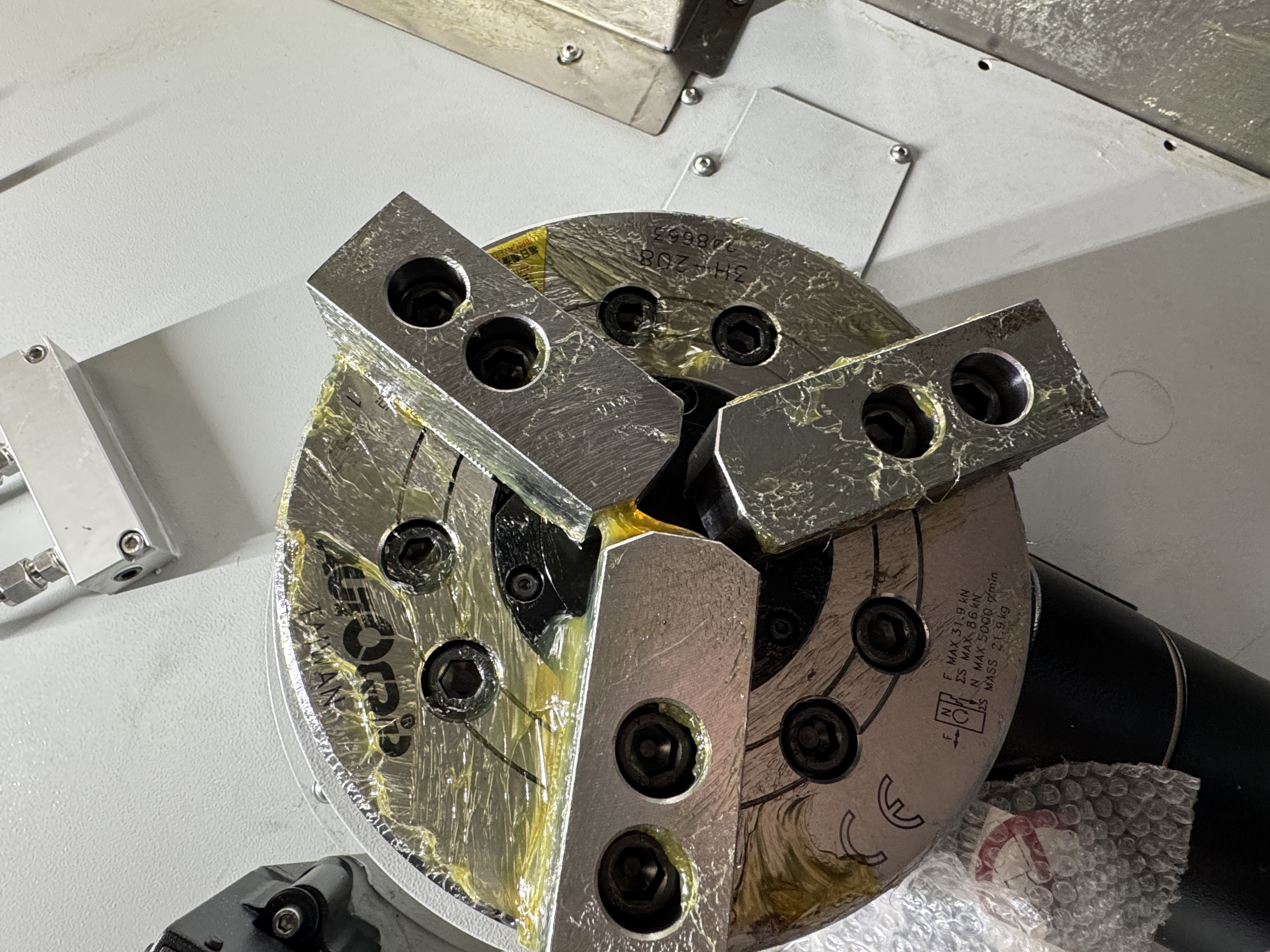 7. Гидравлический 3-кулачковый патрон главного шпинделя 8”