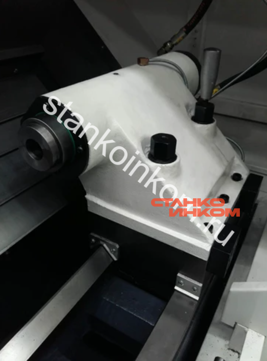 Задняя бабка перемещается в рабочей зоне по прямоугольным направляющим вручную, имеется возможность механического зацепления с суппортом оси Х. При зацеплении задняя бабка будет перемещаться механизированно вдоль оси Z до места зажима для обработки конкретной детали. Гидравлическое перемещение пиноли программируется системой ЧПУ. Давление и проток масла в гидросистеме отдельно регулируются – на гидростанцию, патрон, заднюю бабку, резцедержку.