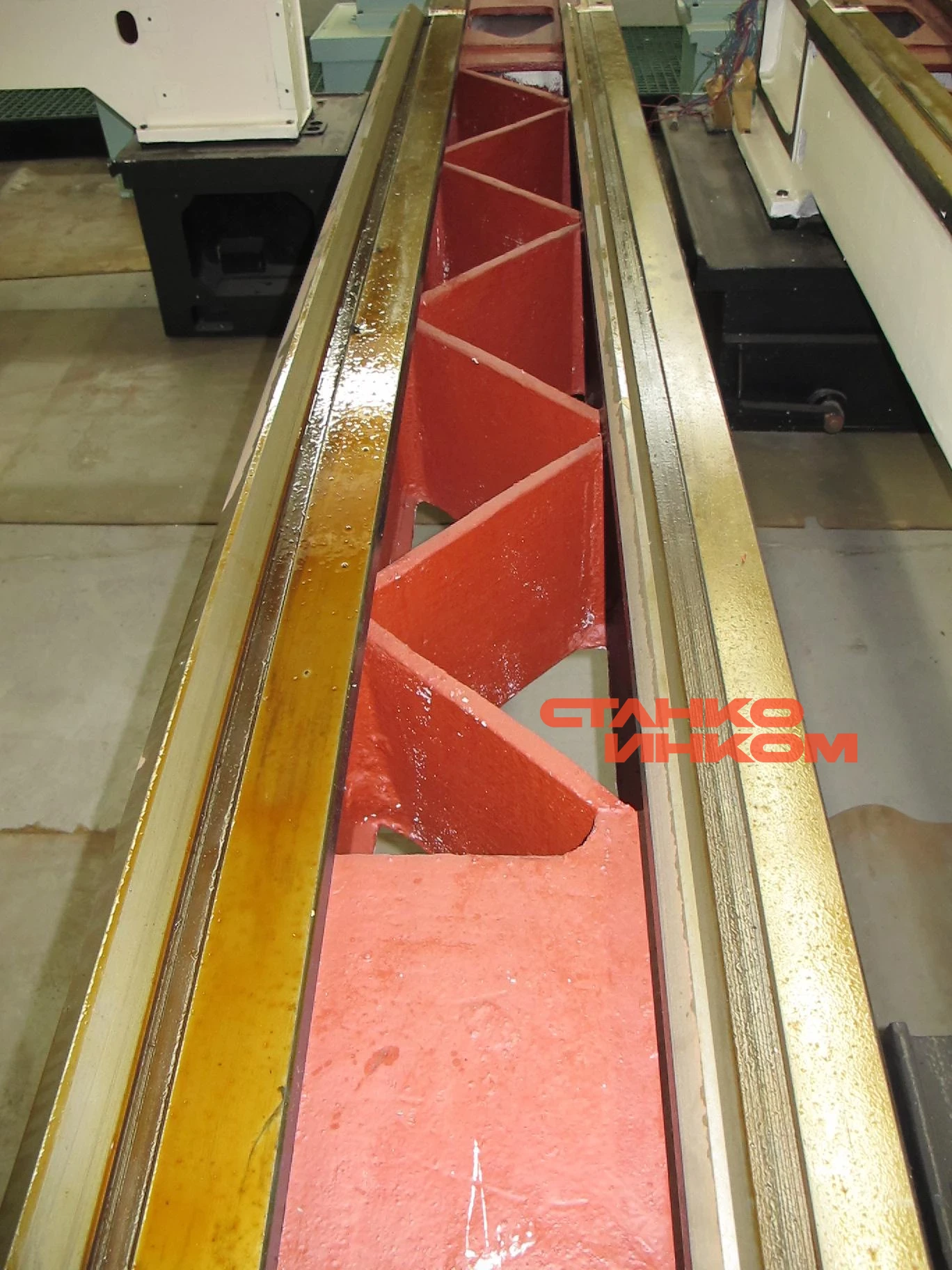 - Закаленные отшлифованные V-образные направляющие, ТВЧ до HRC50. Поверхность перемещающихся узлов (каретки, заднейя бабки) покрыты специальным покрытием Turcite-B для перемещения с минимальным износом и без трения. Система смазки направляющих снижает трудоемкость обслуживания станка и увеличивает его ресурс.