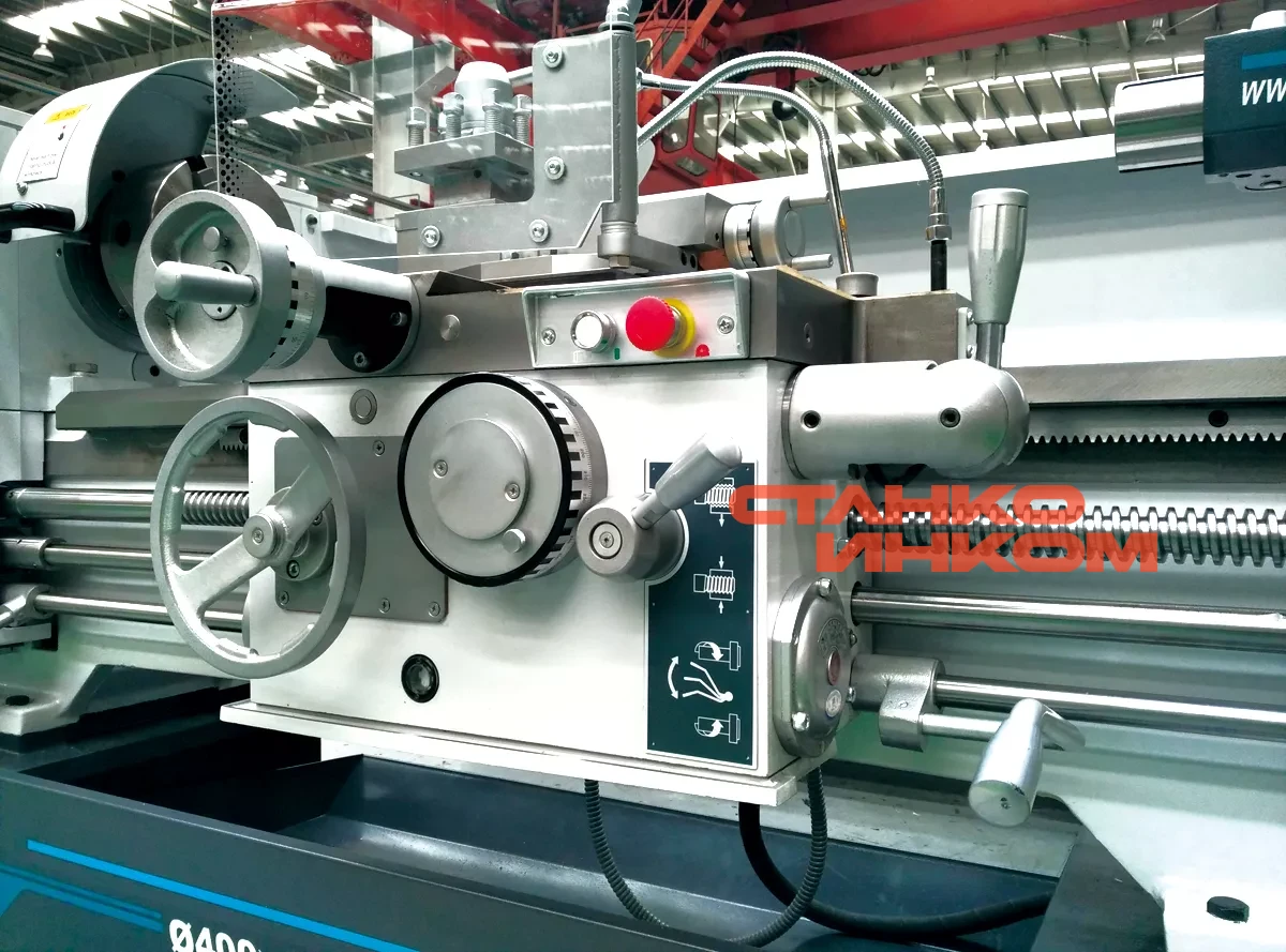Коробка передач имеет большой диапазон скоростей и разработана в соответствии с мировыми стандартами станкостроения. Все шестерни подач для прочности имеют поверхностную закалку. Реализована централизованная система смазки, что гарантирует малый износ шестеренок в процессе работы и продлевает срок эксплуатации станка.