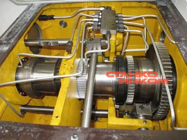 Цельнолитая станина усилена ребрами жесткости. Применение широких направляющих позволяет обрабатывать тяжелые заготовки и делать съем до 5 мм на сторону без потери точности и качества получаемого изделия.