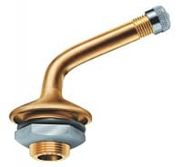 Также там находится внутренняя резьба (для того, чтобы можно было привинтить золотник) и наружная резьба (для того, чтобы можно было привинтить металлический, либо пластиковый колпачок). У золотника присутствует уплотнительная втулка, пружина и резиновый клапан. Все это установлено на стержне. Когда происходит накачивание воздуха, клапан начинает прижимать пружину, и в этот момент он открывает проход для воздуха в область покрышки. Затем, когда накачивание прекращается, за счет действия пружины, клапан начинает прижиматься к втулке и не дает воздуху выйти из покрышки.Если сравнивать металлический вентиль с резиновым, то главное его отличие состоит в том, что он выполнен из латунного (либо стального) корпуса, и у него имеется уплотнительная прокладка с затяжной гайкой. По своей внутренней конструкции, как и по принципу работы, эти вентили между собой идентичны. В основном на всех покрышках для легковых автомобилей применяют резиновый вентиль.Вентиль бескамерной шины