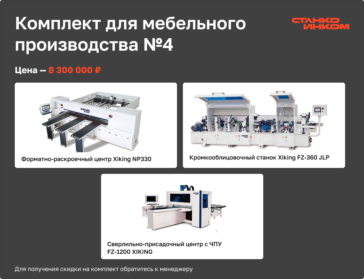Знакомая многим формула успешного старта в мебельном бизнесе — это классическая тройка станков: форматно-раскроечный, кромкооблицовочный и сверлильно-присадочный.Однако, для реального роста и выхода на новые рынки этого набора уже недостаточно. Современное производство требует большего: с развитием к базовым станкам добавляется дополнительное оборудование.