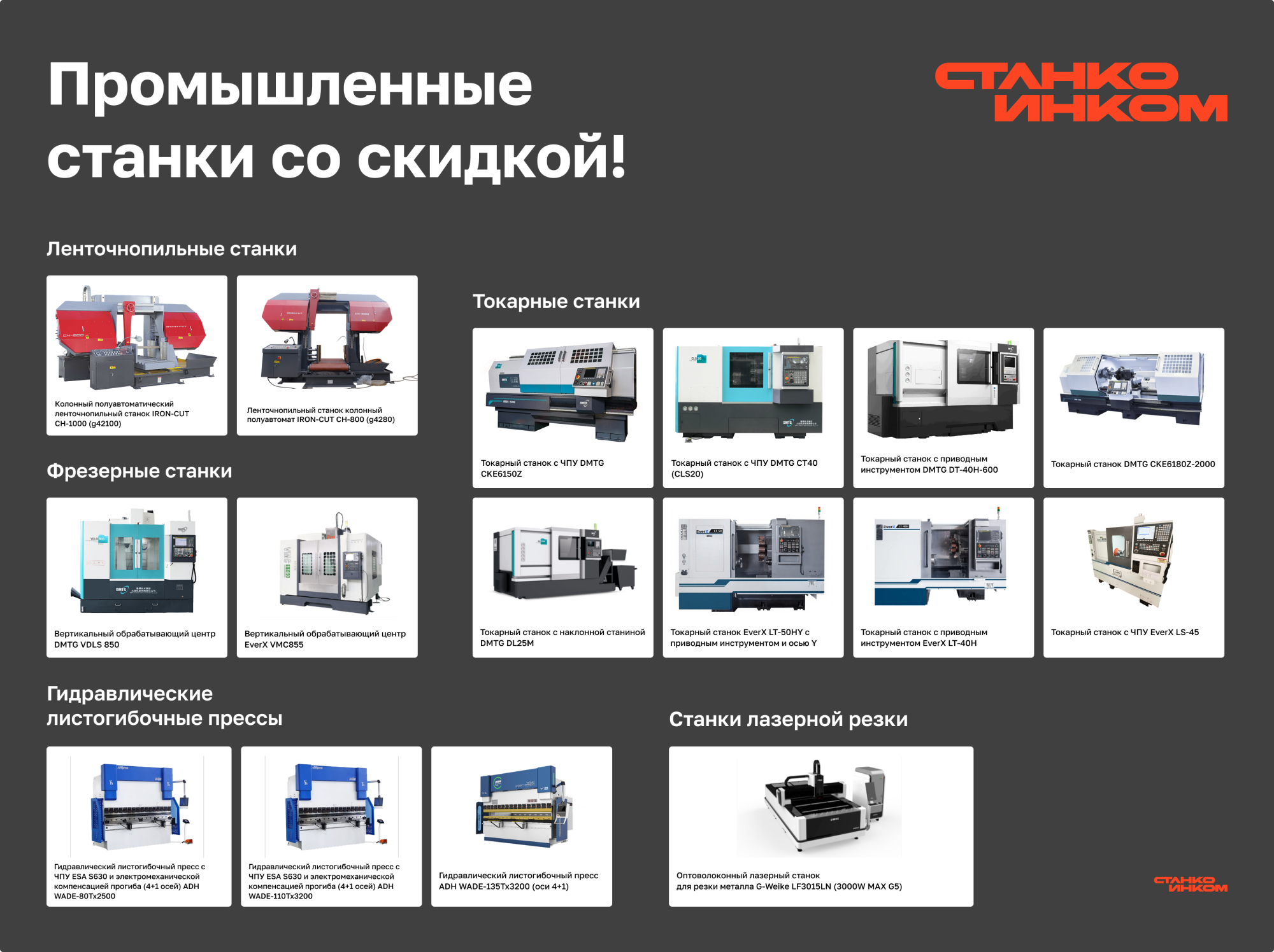 Ищете способ сократить издержки и повысить эффективность вашего цеха? Правильный выбор оборудования — это ключ к решению!Ленточнопильные, токарные, фрезерные станки и листогибочные прессы